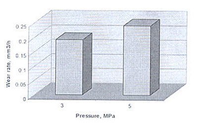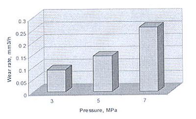 Figure 3: Wear rate of Cu Pb15Sn8 bronze vs. applied pressure